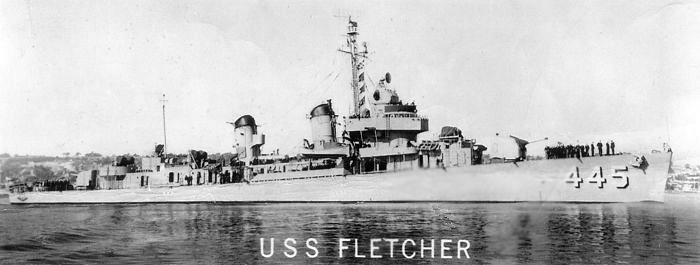 Monday, 28 January, Underway patrolling south of point "Chester" conducting night illumination firing. 0547 Completed night firing, having expended 15 rounds 5"/38 illuminating ammunition. 0835 Heaveto, ROK AMC 307 came alongside to port. 0940 ROK AMC 307 underway. Fletcher resumed patrol of Chudo Sudo. 0943 Opened fire on targets in vicinity Hosen, Korea. 0950 Under fire from enemy shore batteries located northwest of Hosen Korea. 0950 Commenced direct counter battery fire. 1035 Ceased fire, having expended 138 rounds 5"/38 AA common. Counter battery fire ineffective, retired to south in open range. Shore batteries ceased fire, having expended approximately 70 rounds, scoring four straddles and six near misses. No personnel or material casualties resulted. 1221 Ceased firing. 1334 Anchored in ‘Players" anchorage. 1445 J.C. Quitorio IC2, R.W. Huerter ICFA, C. Stanfield SA, A. Randolph SA, and L.W. Palmore SA reported aboard for duty. 1614 Underway from anchorage at Sosari Do and entered swept channel "cigarette". 1702 Commenced firing at personnel concentration on Nanjon Chi. 1715 Completed firing, expended 22 rounds 5"/38 AA common and 13 rounds 5"/38 VT, estimated 30 casualties. 1807 Commenced patrolling area of Cho To. 2022 Commenced night illuminating firing schedule. 2308 Engineering casualty, leaking tube in Number 1 condenser. Locked starboard shaft. Proceeded on port shaft to anchorage south of Cho Do, Korea. 2342 Anchored.
