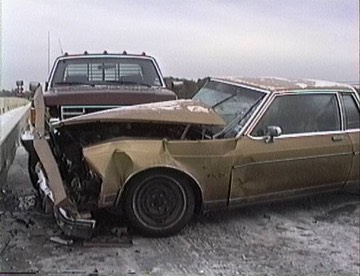 The drunk driver in the car was crossing an icy bridge and slid across the center line and into the pickup. This was a survivable crash if the driver of the car had been wearing a seat belt however she died when she was thrown onto the passenger side and struck her head on a piece of jagged metal. No charges were filed against the uninjured driver of the truck.